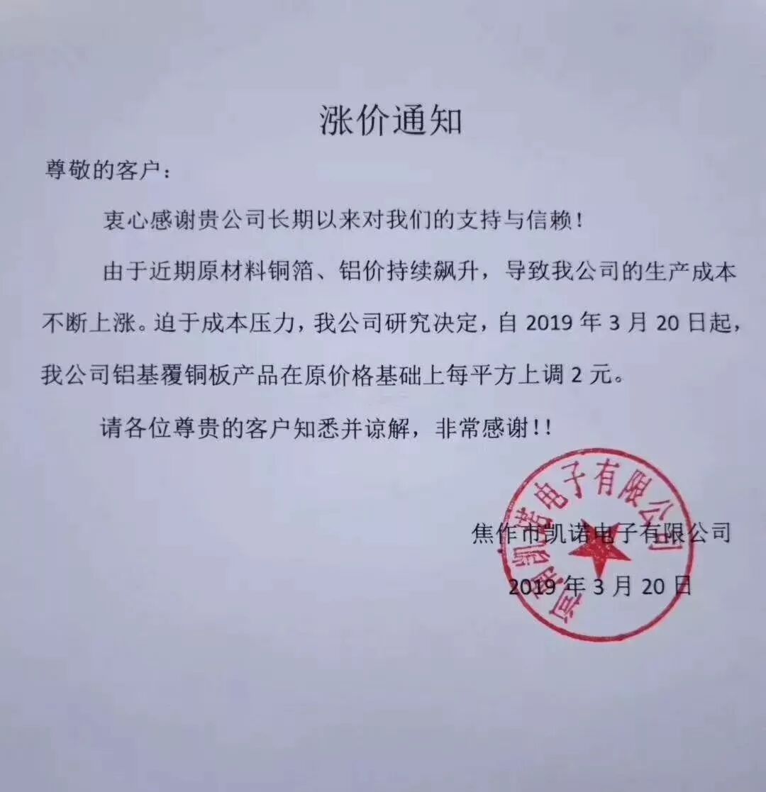 【PCB信息网】讯 近日,一批板材企业相继涨价,而涨价原因无外乎是上游原材料不断调价,迫于成本压力他们也只好跟涨。