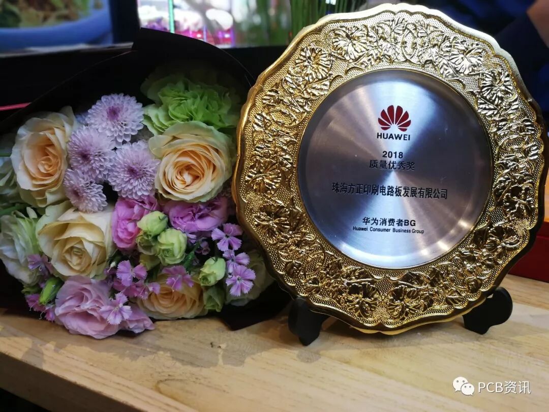 2019年3月22日,方正PCB于“华为2019年CBG供应商质量大会”中获评“质量优秀奖”。这是华为对供应商产品质量的年度最高评定奖项;方正PCB更是荣获该奖项的唯一PCB供应商。