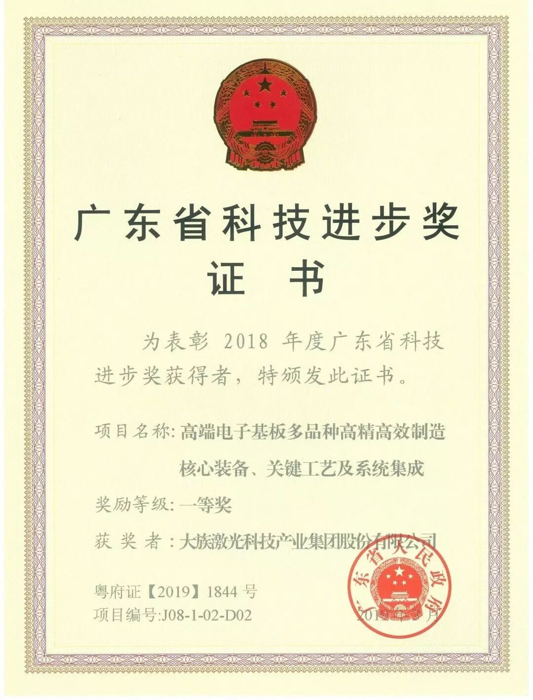 广东省科技创新大会于2019年3月27日在广州隆重举行,会上省政府对获得2018年度全省科技奖项目进行了表彰,深圳市34个项目获奖,其中,大族激光凭借“高端电子基板多品种高精高效制造核心装备、关键工艺及系统集成”荣获科技进步奖一等奖。